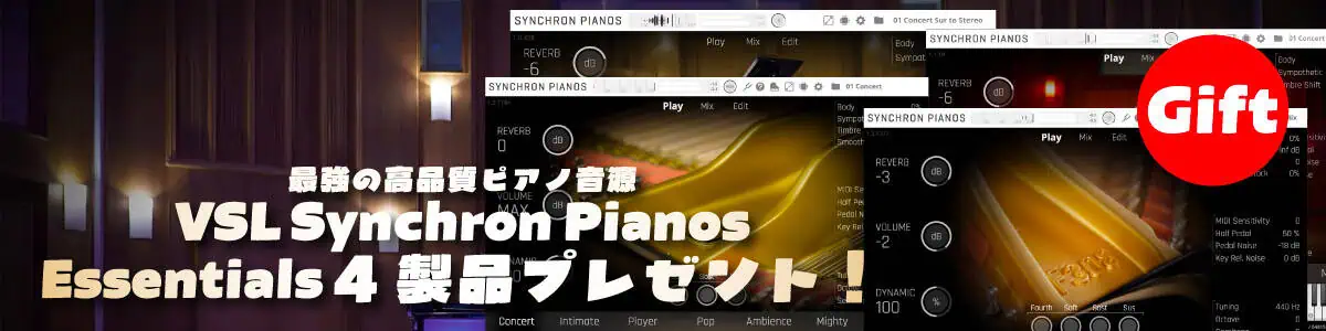 このサウンドバンクを元に、Chisato Yamauchi氏によってより大型のグランドピアノの音色に近づけるよう高品質に処理されています。